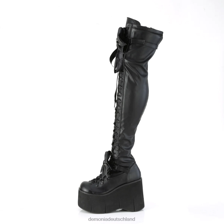 Version 3: Entfesseln Sie Ihre innere Füchsin mit der auffälligen Silhouette der kera-303 oberschenkelhohen Stiefel. Diese Stiefel sitzen auf einem 4 1/2-Zoll-Keilabsatz und werden durch zukunftsweisende D-Ring-Schnürsenkel gesichert. Sie sind ein Beweis für Individualität. Flexible Träger und abnehmbare Plüschschleifen an Knöchel und Oberschenkel ermöglichen individuelle Stilanpassungen. Das elegante, schwarze Stretch-Veganleder umschmeichelt Ihre Beine und bleibt dabei frei von Schuldgefühlen, und der durchgehende Innenreißverschluss garantiert müheloses Tragen.