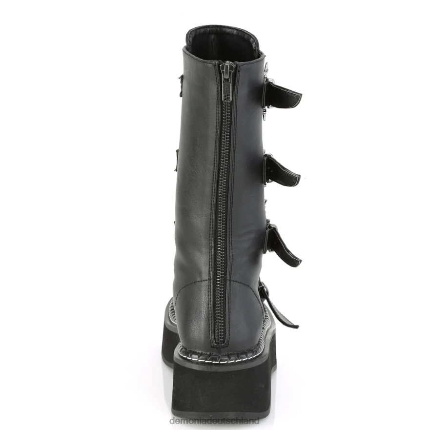 Der Emily-322-Stiefel reicht bis zur Wadenmitte Ein Showstopper, der garantiert für Aufsehen sorgt. Mit einem 2-Zoll-Plateau und einer Schnürung vorne bieten sie sowohl eine höhenverstellbare als auch eine verstellbare Passform. Die fledermausförmigen Schnallen verleihen dem klassischen schwarzen veganen Leder einen Hauch von verspieltem Gothic-Design. Ein Metallreißverschluss auf der Rückseite sorgt für einfaches An- und Ausziehen für unterwegs. Geben Sie ein Statement mit diesen auffälligen Stiefeln ab, die sich perfekt für einen eleganten oder lässigen Look eignen und zu einem echten Grundbestandteil jeder alternativen Garderobe werden.
