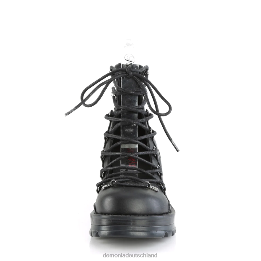 Machen Sie sich bereit, mit unseren Bratty-32-Sandalen alle Blicke auf sich zu ziehen. Diese knöchelhohen Sandalen Hohe Schuhe verfügen über einen 2,75-Zoll-Absatz und ein 1-Zoll-Plateau, was sowohl Höhe als auch Komfort bietet. Die auffällige D-Ring-Schnürung vorne sorgt für einen kühnen und einzigartigen Touch, während der Metallreißverschluss auf der Rückseite für einfaches An- und Ausziehen sorgt. Diese Sandalen aus schwarzem veganem Leder sind sowohl stilvoll als auch nachhaltig. Egal, ob Sie zu einem Konzert, Festival oder zum Ausgehen in die Stadt gehen, die Bratty-32-Sandalen sind die perfekte Wahl, um Ihren alternativen Stil zu zeigen.