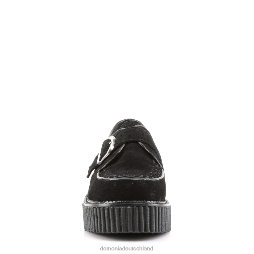 veredeln Ihr Schuhspiel mit dem Creeper-118, einem Wunderwerk aus veganem Wildleder, das mitfühlende Mode mit Hardcore-Edge verbindet. Diese Mönchs-Creepers verfügen über eine 2-Zoll-Plattform, eine markante D-förmige Schnalle und aufwendig verwobene Schürzen- und Paspeldetails, die Sie von der Masse abheben. Das schwarze, vegane Wildleder sorgt bei jedem Schritt für ein weiches, ethisches und stilvolles Erlebnis. Machen Sie sich bereit, Ihren Look mit einer leistungsstarken Plattform zu rocken, die absolut einzigartig ist.