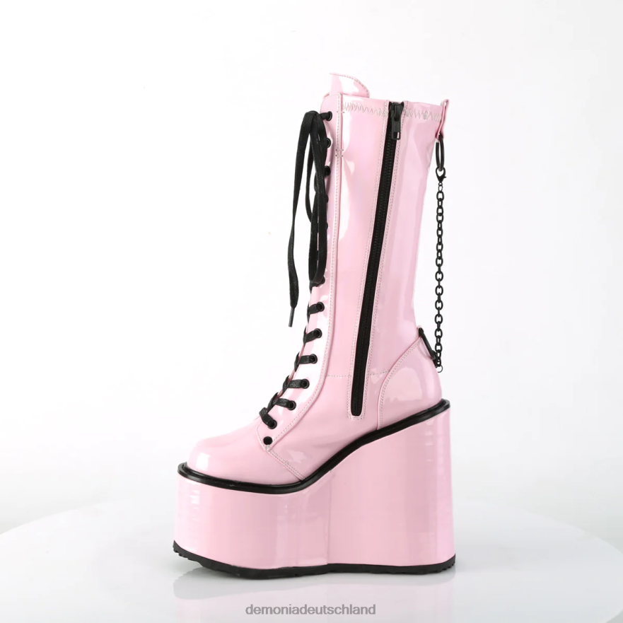 5 1/2 Zoll (140 mm) kniehoher Stretch-Stiefel mit keilförmigem Plateau und Schnürung vorne, abnehmbarem Metallkettendetail und innenliegendem Metallreißverschluss