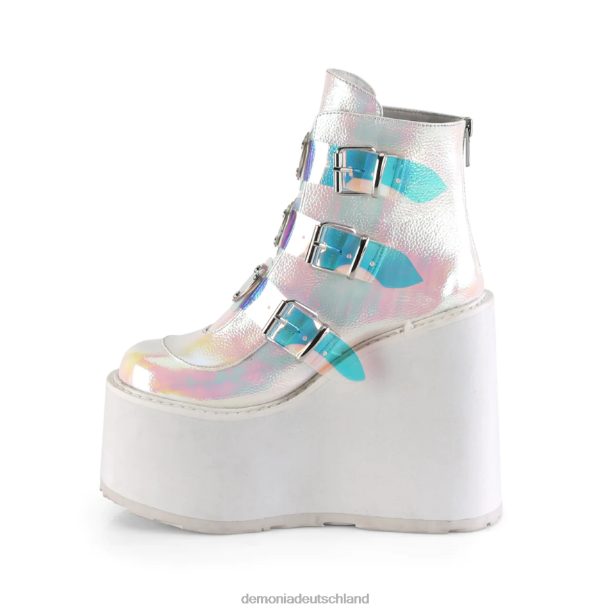 5 1/2 Zoll (140 mm) Keilstiefelette mit Plateausohle, 3 Schnallenriemen mit Metallplatten in der Mitte und Metallreißverschluss hinten