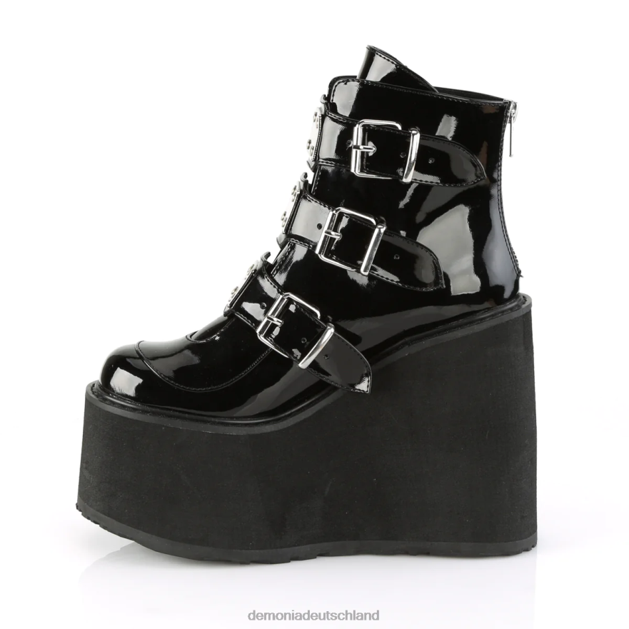 5 1/2 Zoll (140 mm) Plateau-Stiefelette mit Keilabsatz und dreifachen Schnallenriemen mit silberverchromten Metallplatten in der Mitte, Metallreißverschluss hinten