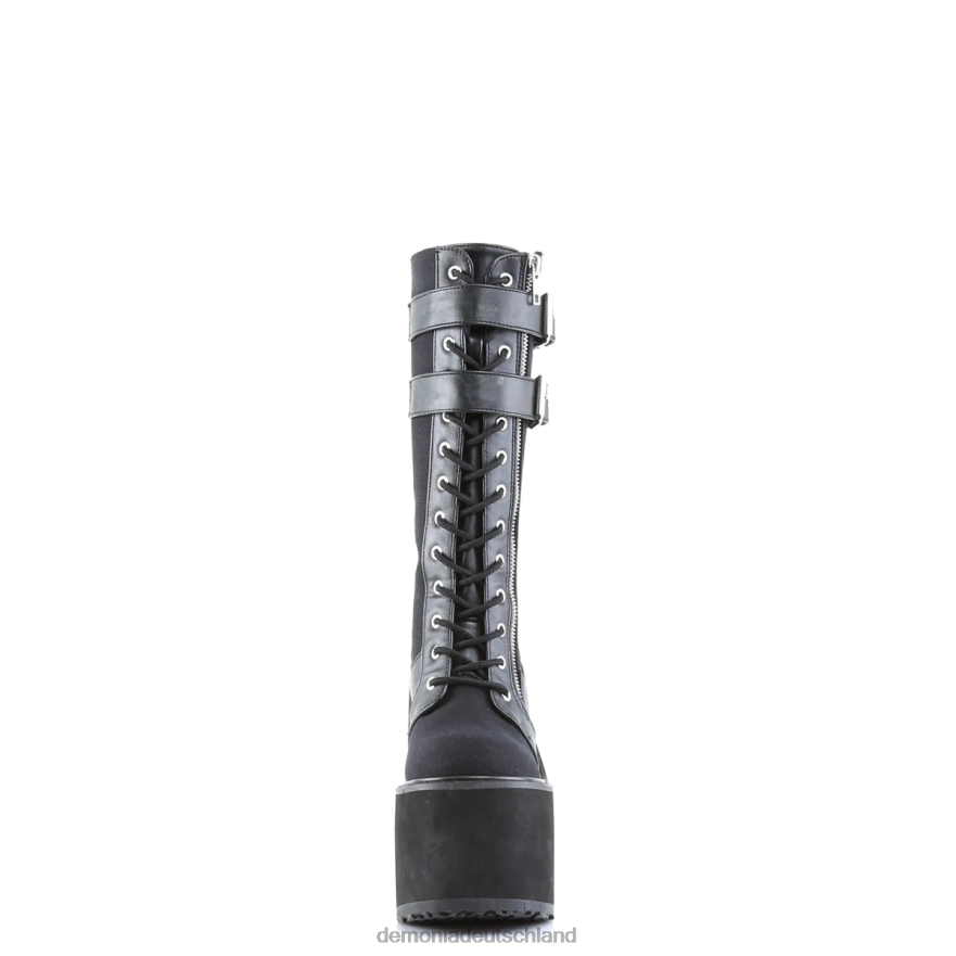 5 1/2 Zoll (14 cm) kniehoher Stiefel mit Plateausohle und Schnürung vorne, freiliegendem Reißverschluss an der Außenseite und Doppelschnallenriemen