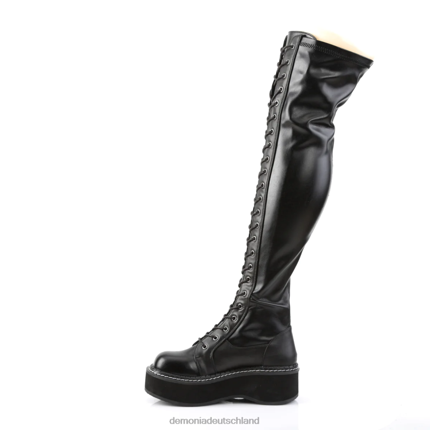 Setzen Sie ein mutiges Statement mit unseren Overknee-Stiefeln Emily-375. Mit auffälligem 2-Zoll-Plateau, Schnürung vorne und äußerem Metallreißverschluss für einfache und zugängliche Passform. Diese Stiefel bestehen aus schwarzem Stretch-Veganleder und gewährleisten eine bequeme Passform für jede Größe. Perfekt für den ausgefallenen Modeliebhaber, der auffallen möchte: Unsere Emily-375-Stiefel machen jedes Outfit unvergesslich.
