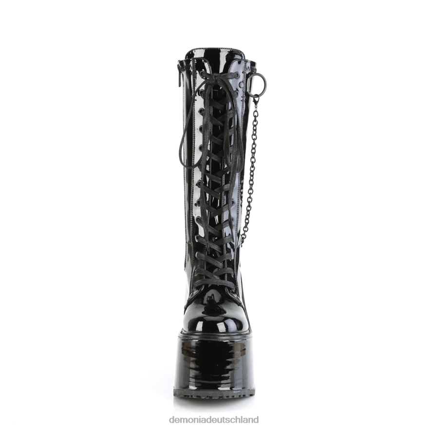 5 1/2 Zoll (140 mm) kniehoher Stretch-Stiefel mit keilförmigem Plateau und Schnürung vorne, abnehmbarem Metallkettendetail und innenliegendem Metallreißverschluss