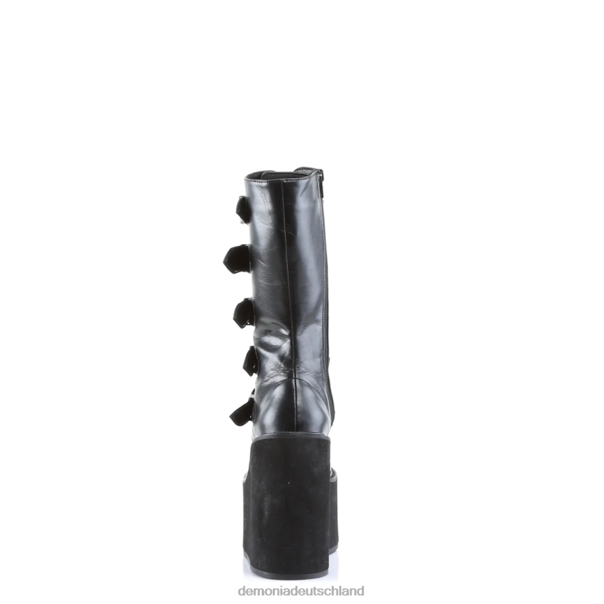 5 1/2 Zoll (14 cm) Keilabsatz-Cyber-Punk-Wadenstiefel mit 5 Schnallen und durchgehendem Reißverschluss aus schwarzem Kunstleder