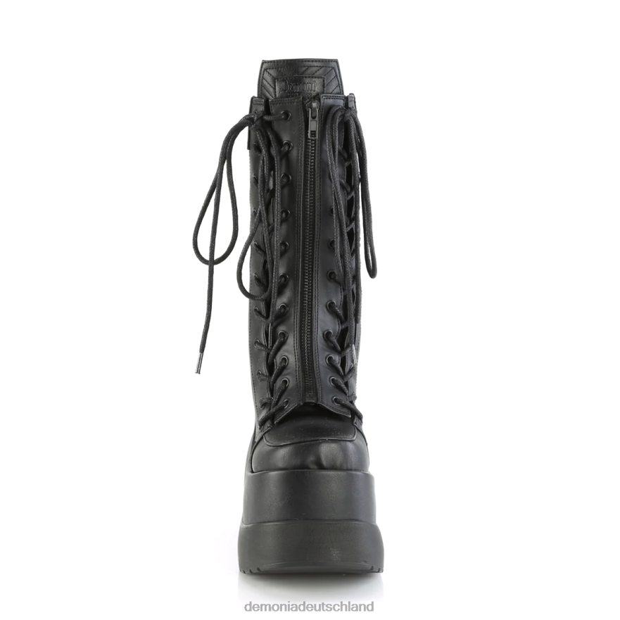 5 Zoll (127 mm) keilabgestufter Plateaustiefel außen und innen mit Schnürung in der Mitte der Wade, sargförmiger Zunge, gepolstertem Kragen und Reißverschluss in der Mitte