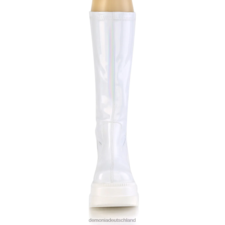 Bei unseren kniehohen Shaker-65-Stiefeln trifft Eleganz auf Eleganz. Die 4 1/2-Zoll-Keilplattform bietet die perfekte Kombination aus Stil und Komfort und macht diese Stiefel zu einem Muss für modebewusste Menschen. Das weiße Hologramm-Design verleiht jedem Outfit einen Hauch von futuristischem Glamour und hebt Sie von der Masse ab. Mit einem durchgehenden Metallreißverschluss an der Rückseite lassen sich diese Stiefel leicht an- und ausziehen, was Ihnen Zeit und Mühe spart. Treten Sie ins Rampenlicht und hinterlassen Sie einen bleibenden Eindruck mit Shaker-65.