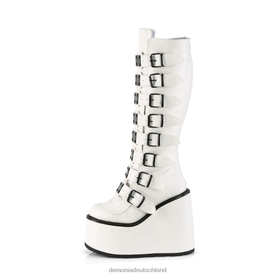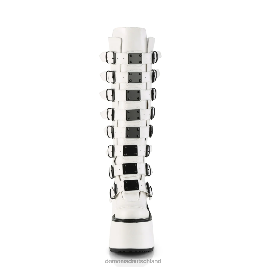 5 1/2 Zoll (140 mm) kniehoher Plateaustiefel mit 8 Schnallenriemen mit Metallplatten in der Mitte und Metallreißverschluss hinten
