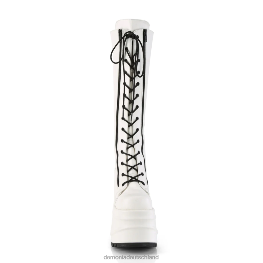 6 Zoll (152 mm) kniehoher Schnürstiefel mit Keilplateau, durchgehender doppelter Metallreißverschluss vorne und durchgehender Metallreißverschluss hinten
