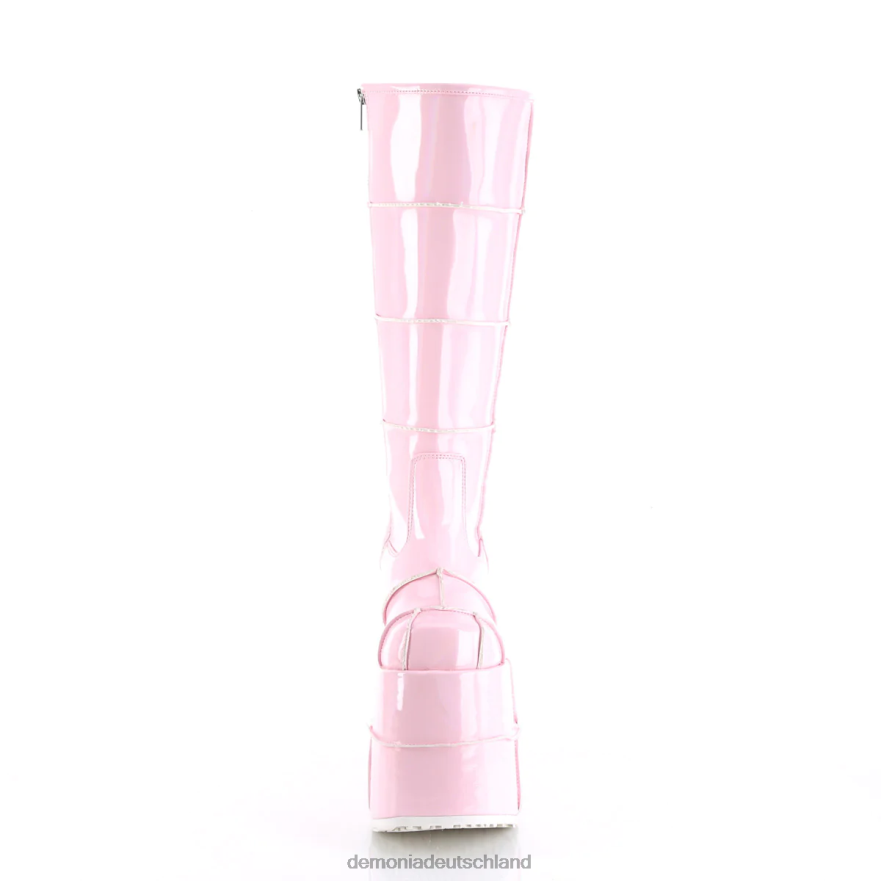 Kniehoher 7-Zoll-Stiefel (178 mm) mit aufgesetzten Details auf Plateau und Vorderblatt und Metallreißverschluss an der Innenseite.