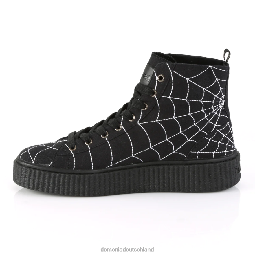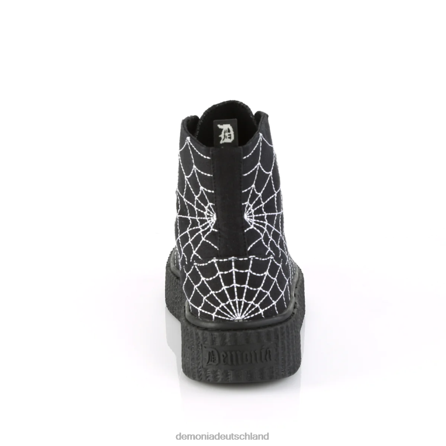 1 1/2 Zoll (38 mm) Plateausohle mit Gummisohle, hoher Schaft, runde Zehenpartie, Schnürung vorne, Creeper-Sneaker mit gesticktem Spinnennetz-Detail