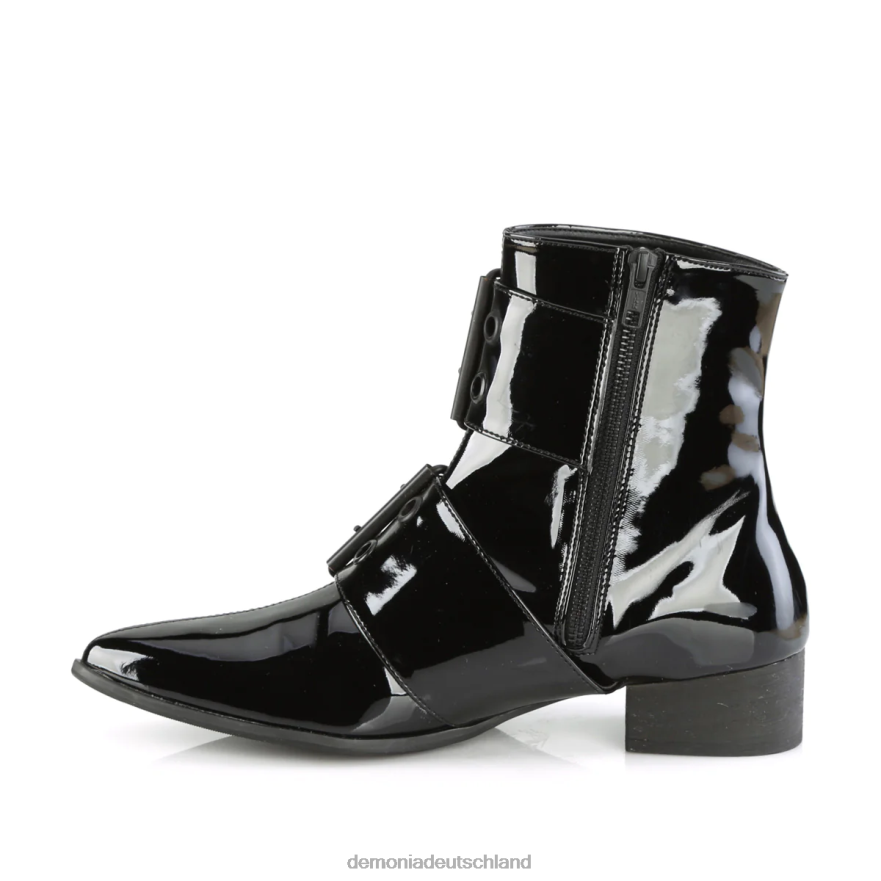 1 1/2 Zoll (38 mm) spitzer Knöchelstiefel im Winklepicker-Stil mit Blockabsatz, Riemen mit doppelter Ösenschnalle und Reißverschluss innen