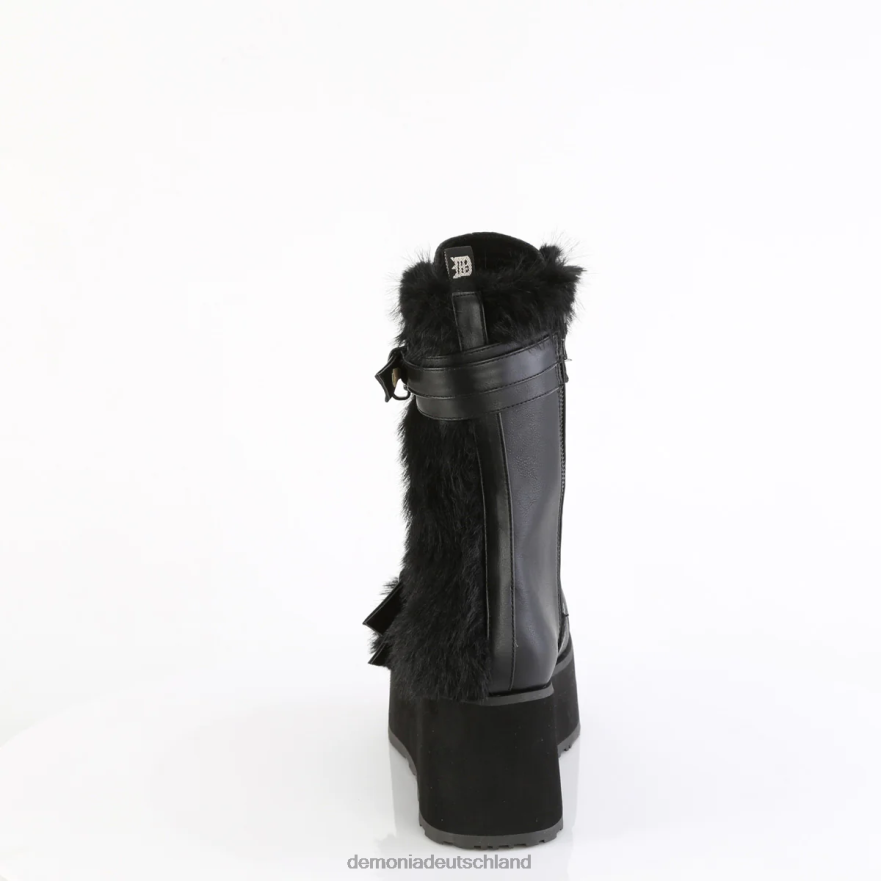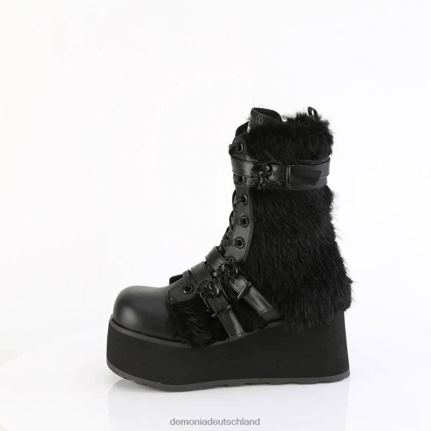 3 1/4 Zoll (83 mm) Plateau-Schnürstiefel in der Mitte der Wade mit 3 Totenkopf-Schnallenriemen und kontrastierendem Felleinsatz auf der Außenseite, seitlicher Metallreißverschluss an der Innenseite