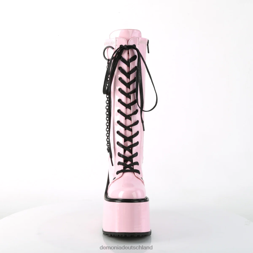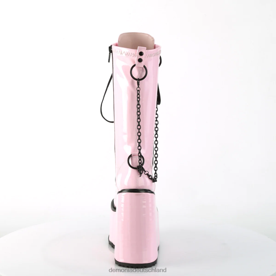 5 1/2 Zoll (140 mm) kniehoher Stretch-Stiefel mit keilförmigem Plateau und Schnürung vorne, abnehmbarem Metallkettendetail und innenliegendem Metallreißverschluss