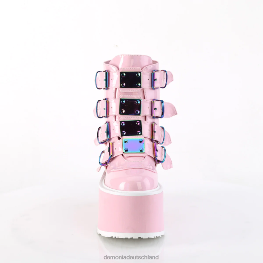 3 1/2 Zoll (90 mm) Plateaustiefelette mit vierfachen Schnallenriemen mit Metallplatten in der Mitte und Metallreißverschluss hinten