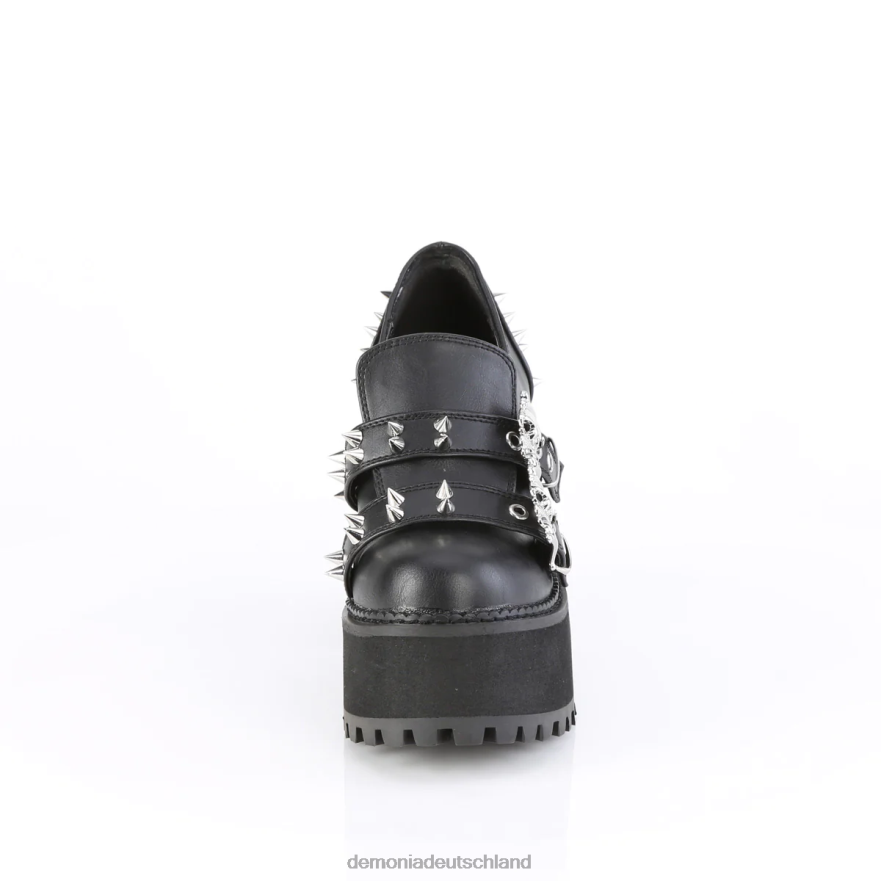 4 3/4 Zoll (121 mm) Blockabsatz, 2 1/4 Zoll (57 mm) Plateau-Loafer mit Stollen Doppelte Totenkopf-Schnallenriemen und kegelförmige Nietendetails an Riemen und Ferse