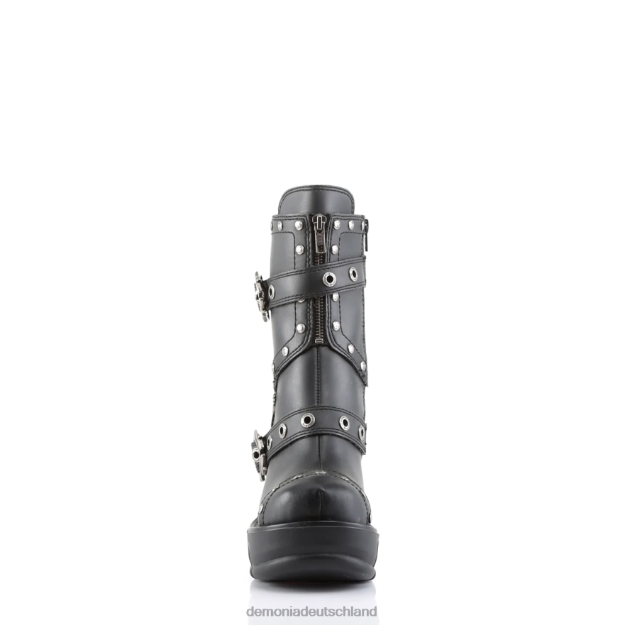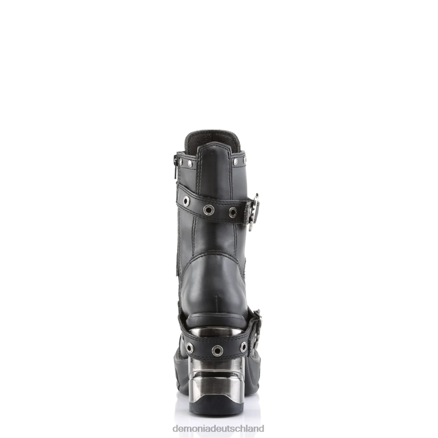 3 1/2 Zoll (89 mm) verchromter Absatz, 1 1/2 Zoll (38 mm) geformte Plateau-Stiefelette mit mehreren Riemen und Nieten, durchgehender Reißverschluss an der Innenseite