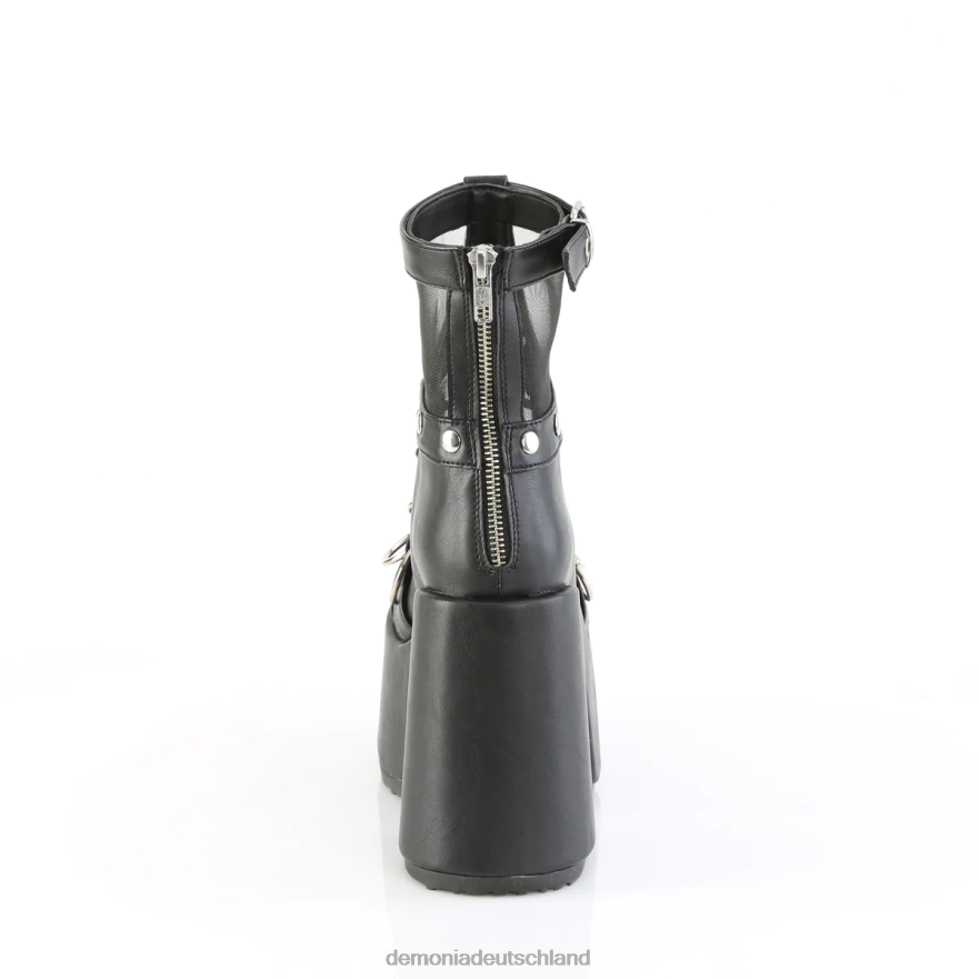 5 Zoll (127 mm) klobiger Absatz, 3 Zoll (75 mm) Plateau-Schnürstiefelette vorne mit Mesh-Einsatz oben mit Schnallenriemen, O-Ringen und flachen Nietendetails, hinterer Metallreißverschluss