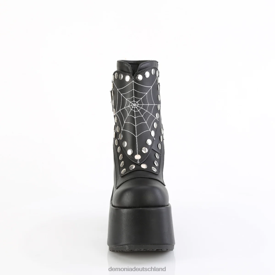 5 Zoll (127 mm) klobiger Absatz, 3 Zoll (76 mm) Plateau-Schnürstiefel in der Mitte der Wade mit Herzschild-Schnallenriemen mit gesticktem Spinnennetz und runden Nietendetails, seitlicher Reißverschluss aus Metall an der Innenseite