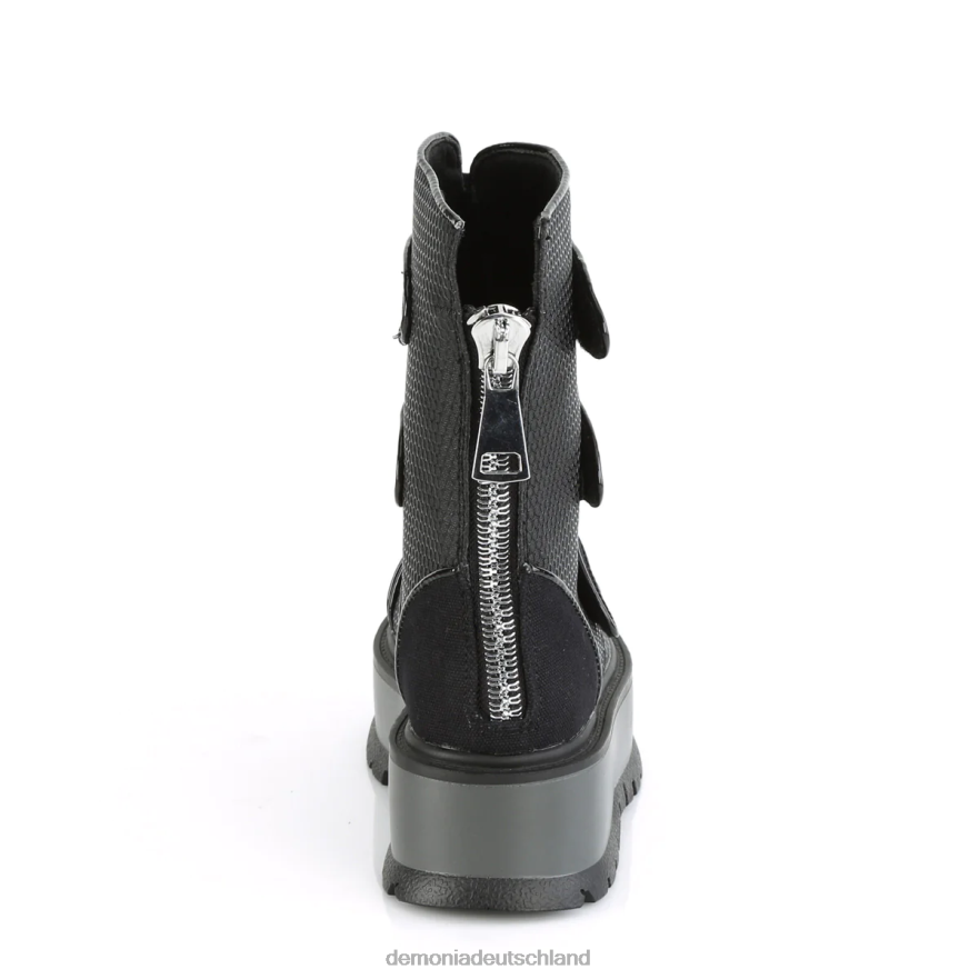 2 Zoll (51 mm) Plateau-Schnürstiefel in der Mitte der Wade vorne mit 3 Klettverschlussriemen mit Nieten und metallischen ovalen Details, hinterer Metallreißverschluss