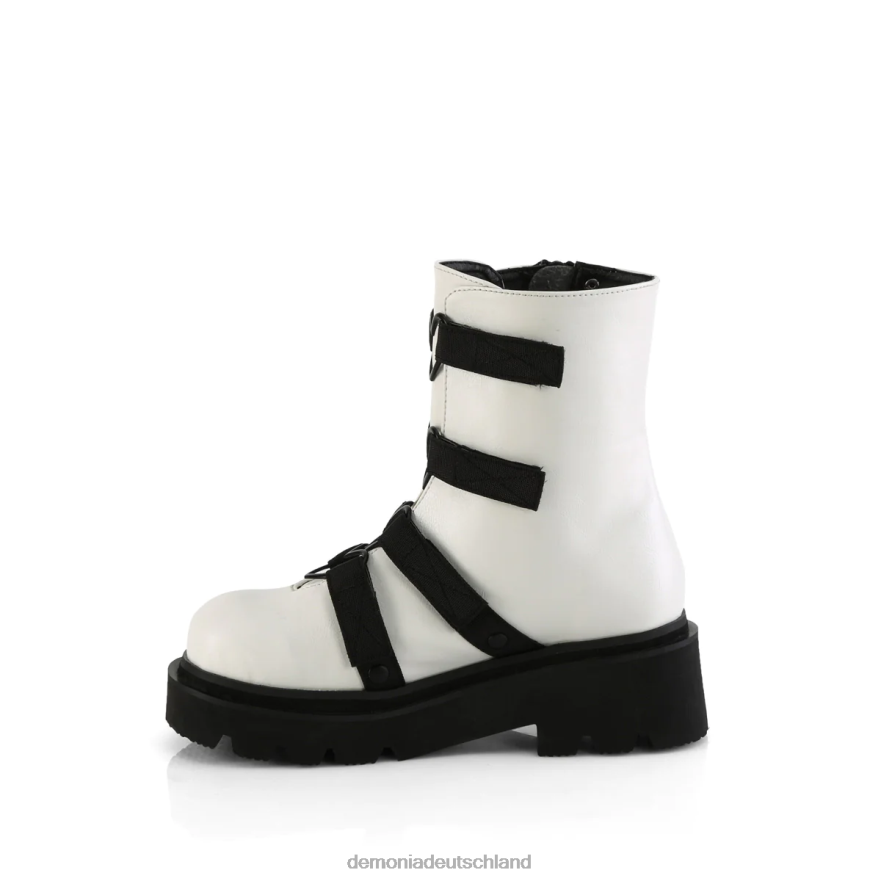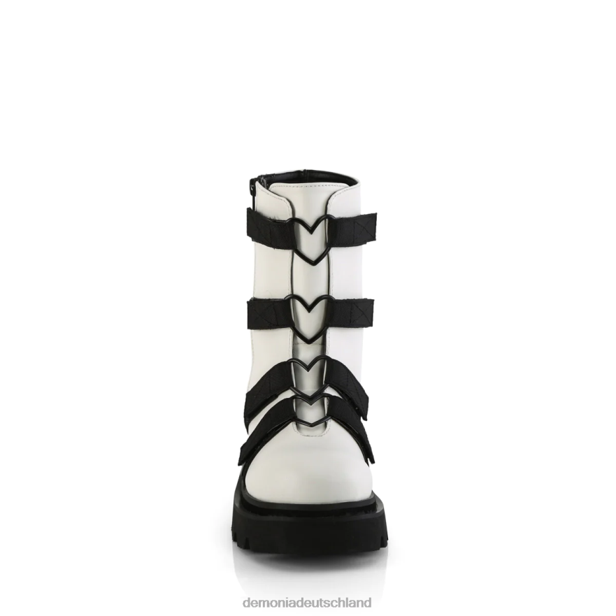 2 1/2 Zoll (64 mm) gestufte Riemchenstiefelette mit Plateausohle, Herzringen aus Metall und äußeren und inneren Klettverschlüssen aus Nylon, Reißverschluss an der Außenseite aus Metall