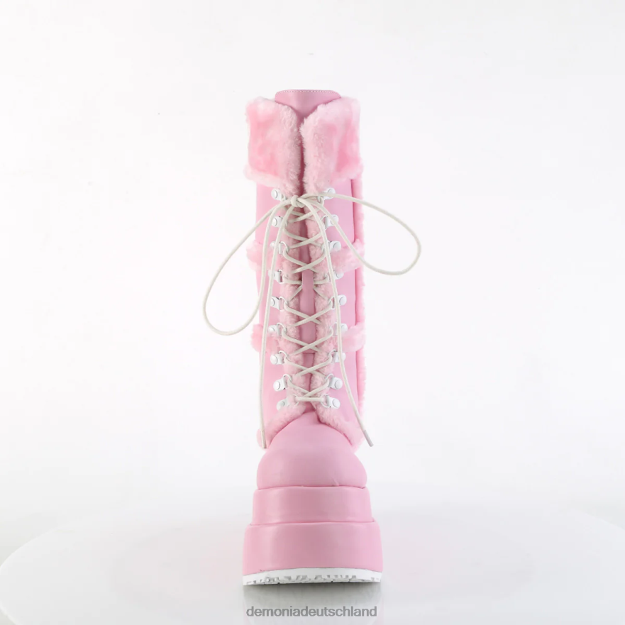 4 1/2 Zoll (114 mm) abgestufter Plateau-Schnürstiefel in der Mitte der Wade mit Kunstpelzbesatz und Manschettendetails, durchgehender Reißverschluss an der Innenseite