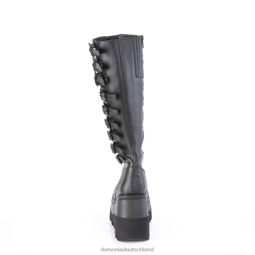4 1/2 Zoll (114 mm) kniehoher Stiefel mit Keilplateau, dekorativer seitlicher Schnalle und Totenkopfschnalle mit Nahtdetails, durchgehender Reißverschluss an der Innenseite
