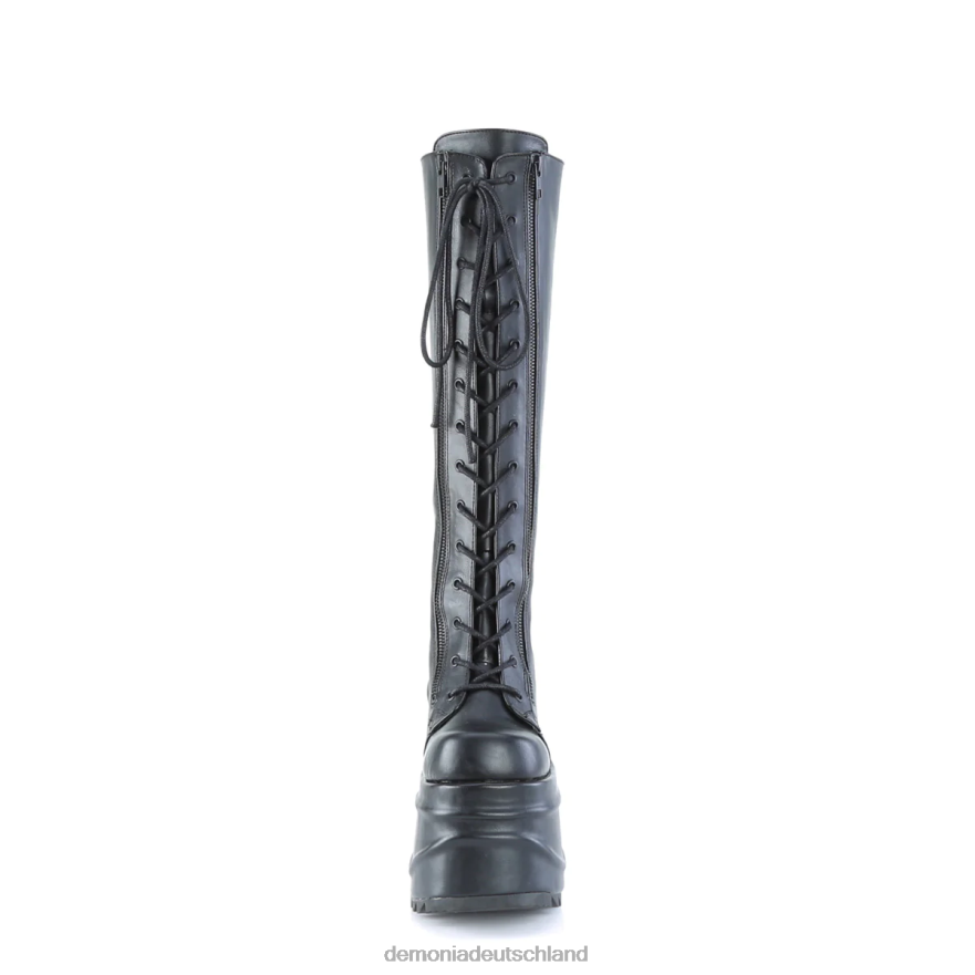 6 Zoll (152 mm) kniehoher Schnürstiefel mit Keilplateau, durchgehender doppelter Metallreißverschluss vorne und durchgehender Metallreißverschluss hinten