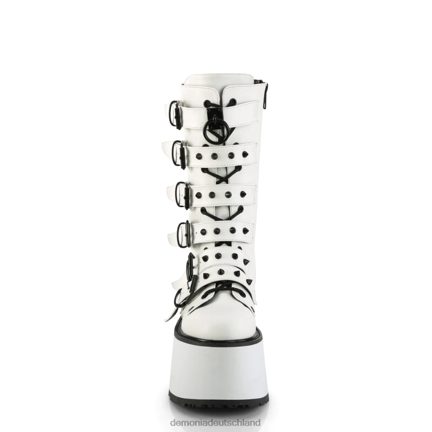 3 1/2 Zoll (90 mm) Plateau-Schnürstiefel in der Mitte der Wade vorne mit 6 kegelförmigen Schnallenriemen, innenliegender Metallreißverschluss