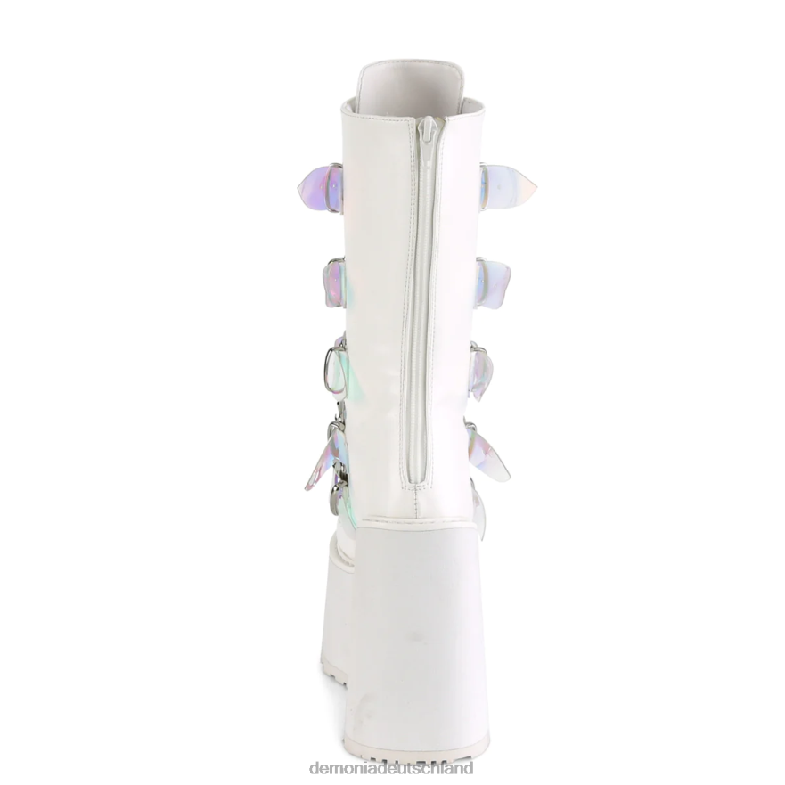 5 1/2 Zoll (140 mm) Plateaustiefel in der Mitte der Wade mit 5 Schnallenriemen mit herzförmigen Metallplatten in der Mitte und Metallreißverschluss hinten