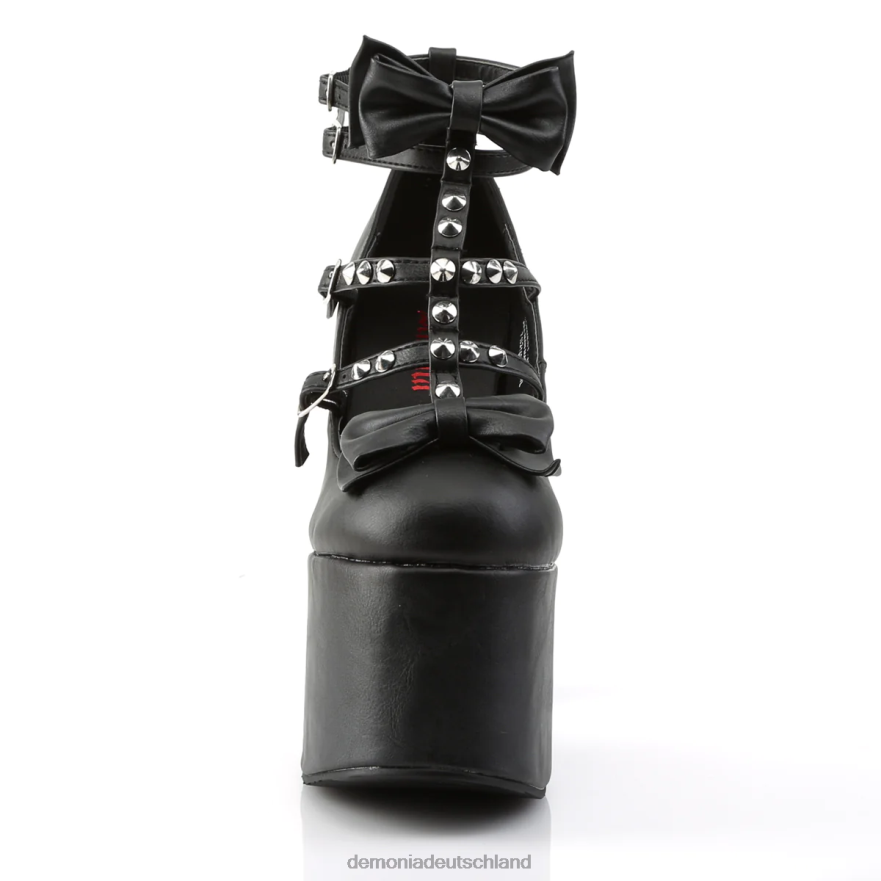 5 1/2 Zoll (14 cm) Blockabsatz, 3 Zoll (76 mm) Plateau-Riemchenpumps mit T-Riemen, doppelten Schleifen und stacheliger Nietenverzierung