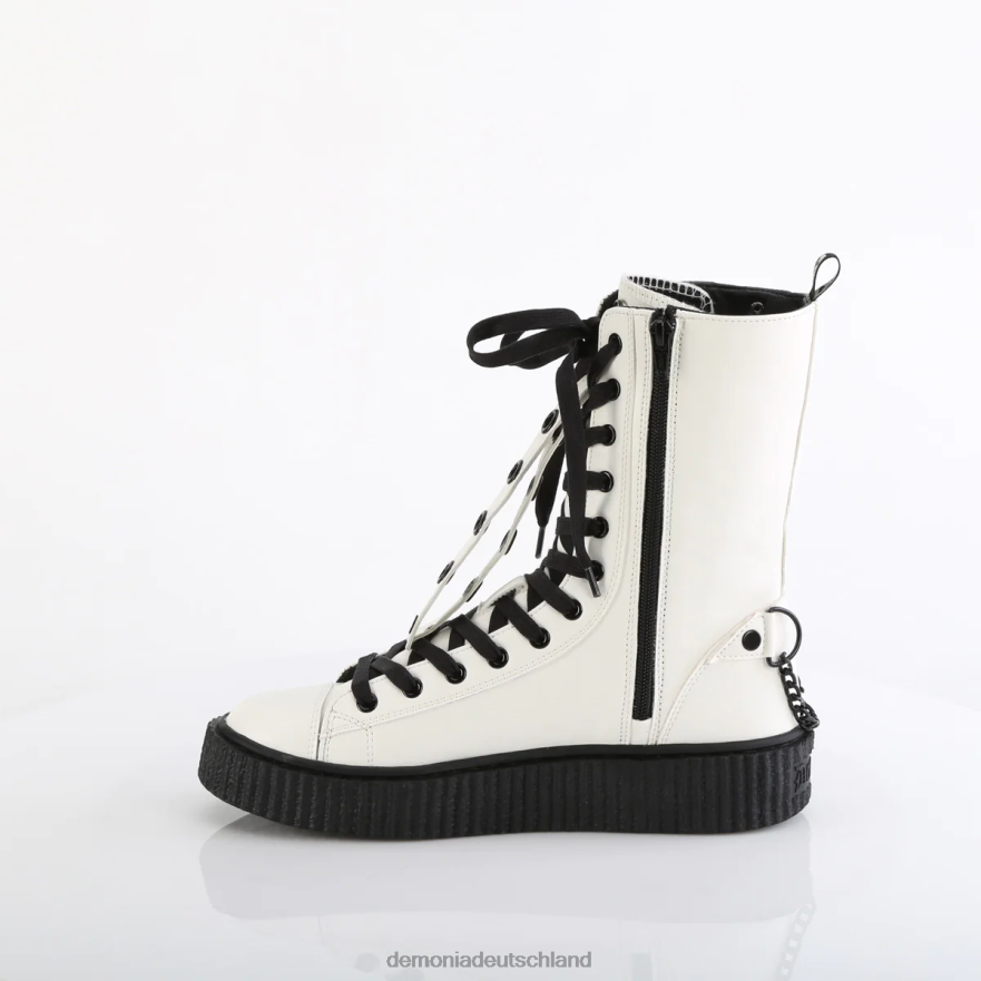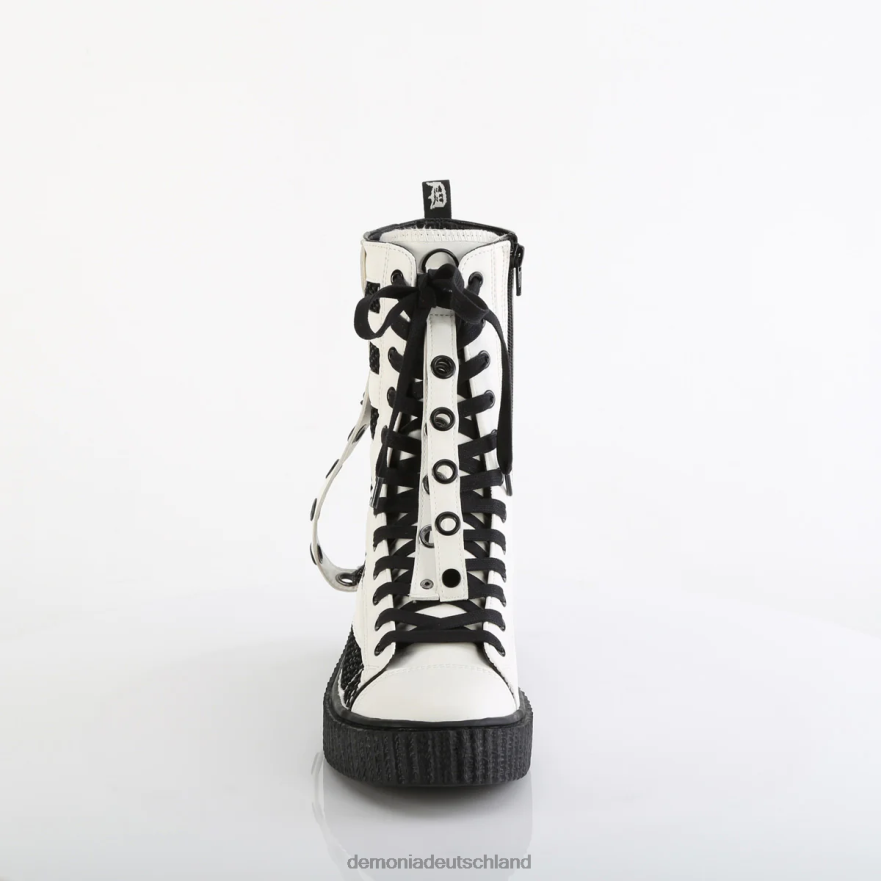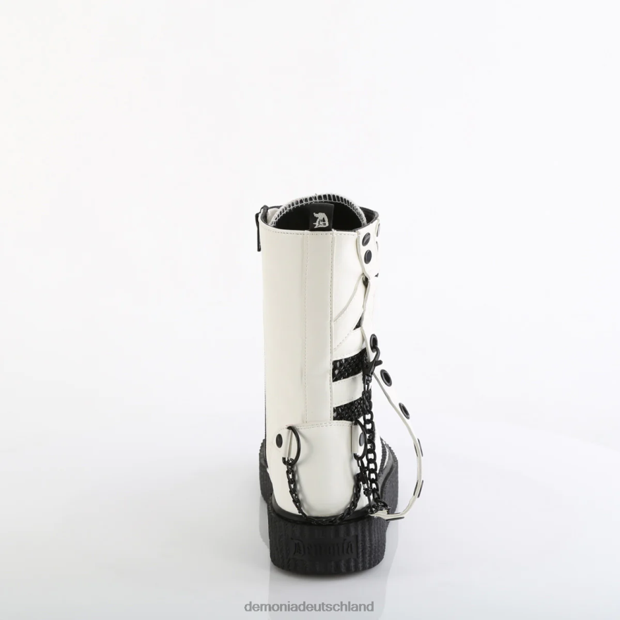 1 1/2 Zoll (38 mm) Plateau-Gummisohle, runde Zehenpartie, Schnürung vorne in der Mitte der Wade, Creeper-Sneaker-Stiefel mit gestreiften, kontrastierenden Seiteneinsätzen und genieteten Trageriemen- und Kettendetails, durchgehender Metallreißverschluss an der Innenseite