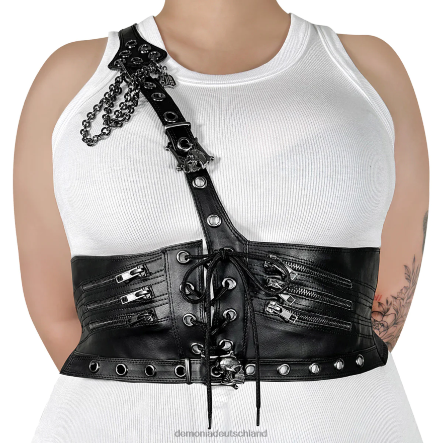 Hüftgurt aus Kunstleder mit verstellbaren Schulter- und Hüftgurten, Schnürung vorne, Zierreißverschluss, hängende Kette und Anhängerdetails, Metallreißverschluss hinten