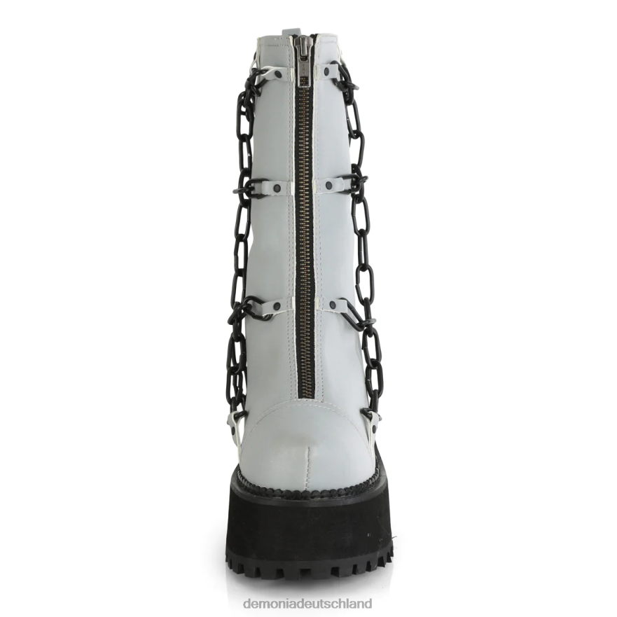 4 3/4 Zoll (121 mm) Blockabsatz, 2 1/4 Zoll (57 mm) Plateau-Stiefelette mit Stollen, Metallkäfigkettendetails am Vorderblatt, durchgehender Metallreißverschluss vorne