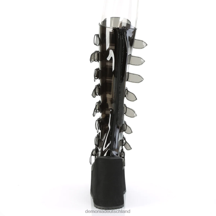 5 1/2 Zoll kniehoher Plateaustiefel mit 8 Schnallenriemen, hinterer Metallreißverschluss