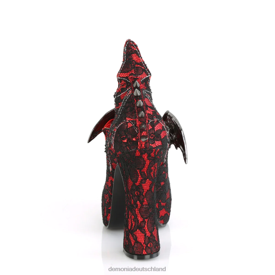5 Zoll (127 mm) Absatz, 1 1/2 Zoll (38 mm) verdeckter Slip-On-Mary-Jane-Plateaupumps mit elastischem Riemen und großem Fledermausflügel-Detail aus Metall mit Kegelspitze und Nieten an der Fersenkappe.