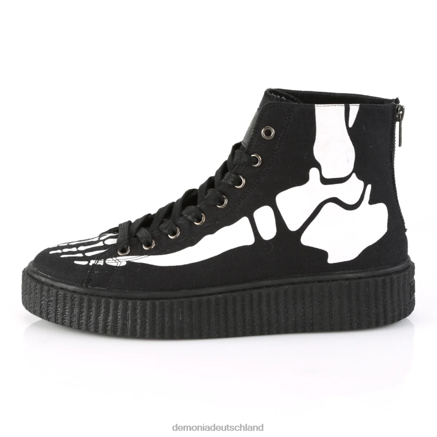 1 1/2 Zoll (38 mm) Plateau-Gummisohle, hoher Schaft, runde Zehenpartie, Schnürung vorne, Creeper-Sneaker mit Röntgenknochen-Aufdruck, durchgehender Metallreißverschluss hinten