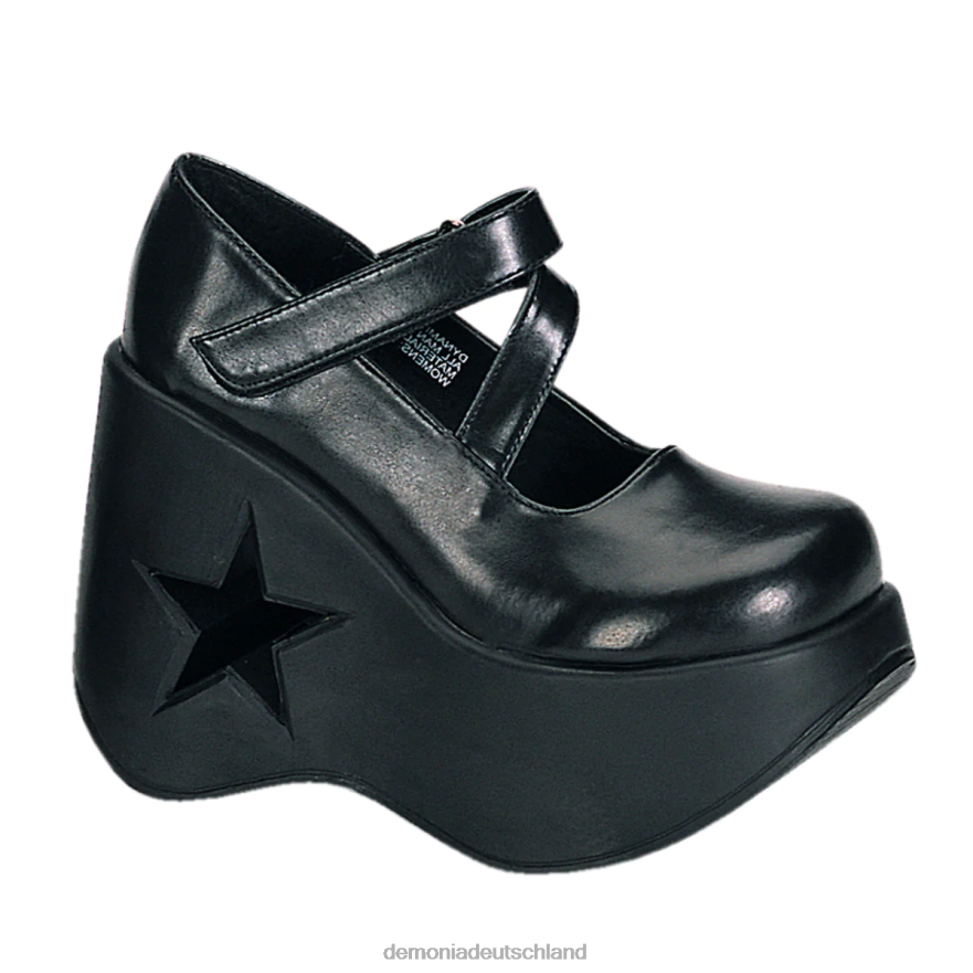 Steigen Sie ins Rampenlicht mit der Dynamite-03, einer auffälligen Mary-Jane-Sandale, die Gothic-Charme mit Lolita-Süßigkeit verbindet. Diese schwarzen, veganen Lederschönheiten mit einem himmelhohen 5 1/4-Zoll-Keilabsatz und einem verspielten Sternausschnitt bieten kühnen Stil ohne Kompromisse. Sichern Sie Ihren Stil mit dem bequemen Riemen und genießen Sie die Aufmerksamkeit, die Ihr Dynamit-Look auf sich ziehen wird. Genießen Sie die ausgefallene Seite des Komforts und hinterlassen Sie Ihren Stempel im Dynamite-03.