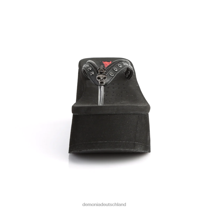Wir stellen die mit Nieten besetzte Zehenstegsandale Funn-33 vor, das ultimative Schuhwerk für alle, die alternativen Stil lieben. Mit einem 3 1/2-Zoll-Plateau und einem eleganten schwarzen Design aus veganem Leder bieten diese Sandalen Komfort und einen Hauch von Rebellion. Der dekorative Reißverschlussbesatz mit Totenkopf-Reißverschlusskopf sorgt für ein markantes und ausgefallenes Detail. Vielseitig genug, um mit Ihren Lieblingssommerkleidern oder -jeans kombiniert zu werden, verleihen diese Sandalen Ihrem Look sofort ein Upgrade. Geben Sie ein Statement ab und entfesseln Sie Ihre Individualität mit den Funn-33-Sandalen.