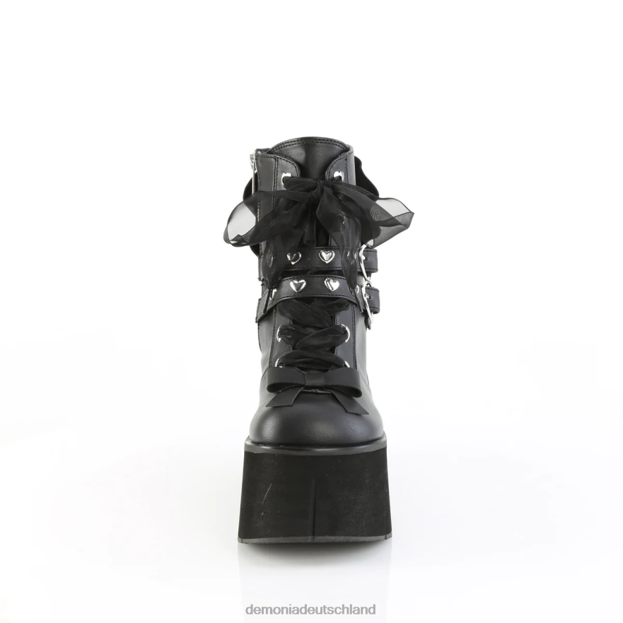 4 1/2 Zoll (114 mm) Plateau-Stiefelette mit durchsichtigem Band, Schnürung vorne und herzförmigen Ösen, Riemen mit doppelten Herznieten, Herzschnallen und Rüschen- und Schleifendetails sowie Metallreißverschluss an der Innenseite.