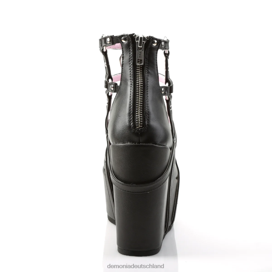 Gehen Sie mit Zuversicht in die Nacht Der Poison-25-1, der ultimative Cage-Stiefel mit Keilplateau für alle, die es wagen, aufzufallen. Verziert mit dynamischen Nieten und vielseitigen O-Ringen, abgerundet mit einem bezaubernden Pentagramm-Anhänger, sind diese Stiefel ein Statement der Stärke. Sie bestehen aus glattem schwarzem veganem Leder und sind sowohl gewissenhaft als auch schick. Perfekt für den modernen Maven, der bereit ist, jede Szene mit Stil und Seele zu erobern.