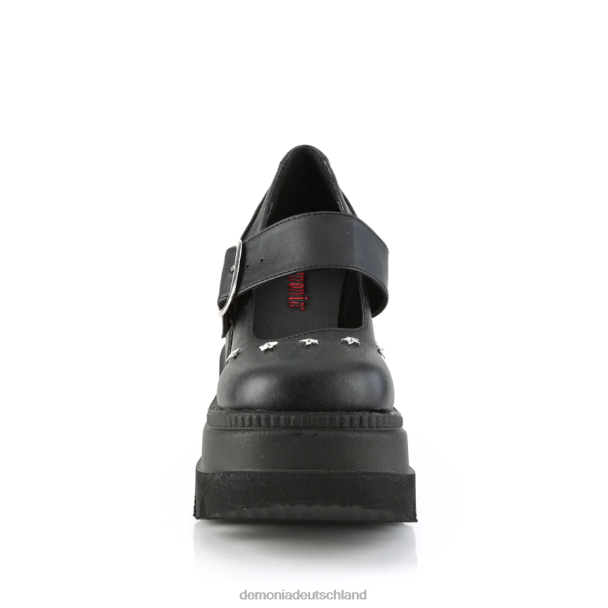 der Shaker- 23 Maryjane ist eine modebewusste Kraft, die durch ihr herausragendes Design besticht. Dieser vegane schwarze Lederschuh verfügt über eine leistungsstarke 4 1/2-Zoll-Keilplattform, die Ihren Stil und Ihre Statur unterstreicht. Der Vamp wird durch verspielte Sternnieten zum Leben erweckt und verleiht Ihrem Schritt genau das richtige Maß an Flair. Komplettiert mit einem klassischen Schnallenriemen ist der Shaker-23 ein vielseitiges Statement-Stück, das perfekt zu Ihrer alternativen Ästhetik passt.
