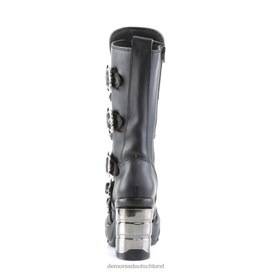3 1/2 Zoll (89 mm) verchromter Absatz, 1 1/2 Zoll (38 mm) geformter Wadenstiefel mit mehreren Riemen und Nieten, durchgehender Reißverschluss an der Innenseite