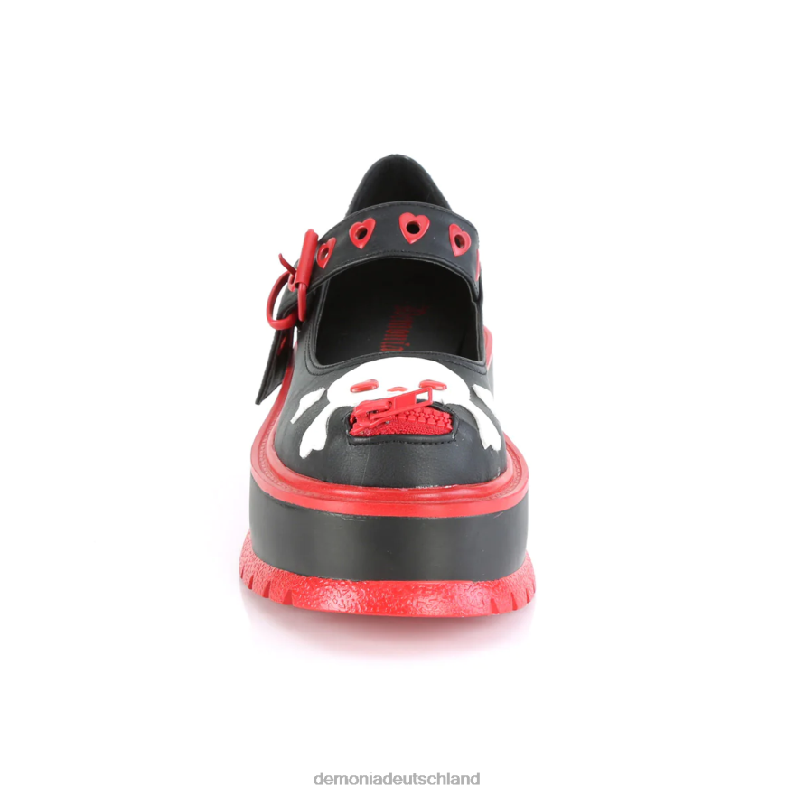 2-Zoll-Plateau-Maryjane mit Herz-Ösen-Schnallenriemen und herzbesetztem Totenkopf mit gekreuztem Knochen und Reißverschlussdetail am Schuhblatt