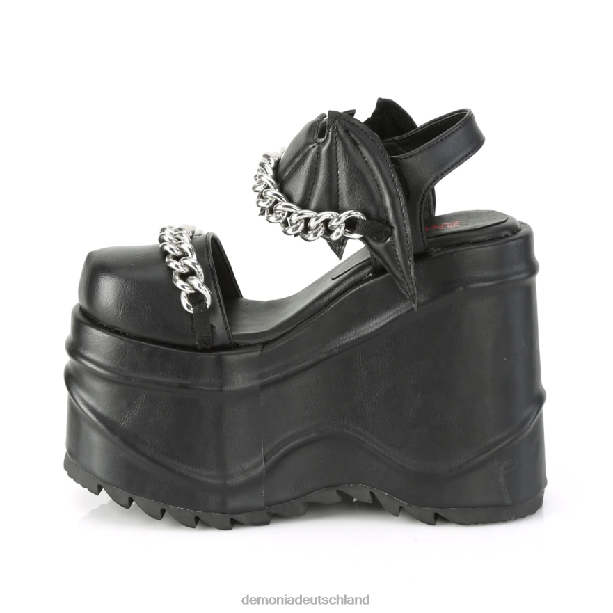 6 Zoll (152 mm) Keilplateau-Sandale mit Knöchelriemen und enger Zehenpartie, Fledermaus-förmigem Klettverschluss am Knöchel, Mond- und Kettendetails