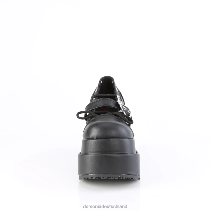 4 1/2 Zoll (114 mm) abgestufte Plateau-Maryjane mit Fledermausschnallenriemen und Ösenbesatz mit austauschbaren schwarzen und roten Schnürsenkeln