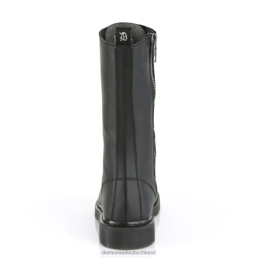 1 1/4 Zoll (32 mm) gestapelter flacher Absatz, 14-Loch-Schnürung in der Mitte der Wade, veganer Unisex-Stiefel mit Zuglasche hinten, Innenreißverschluss
