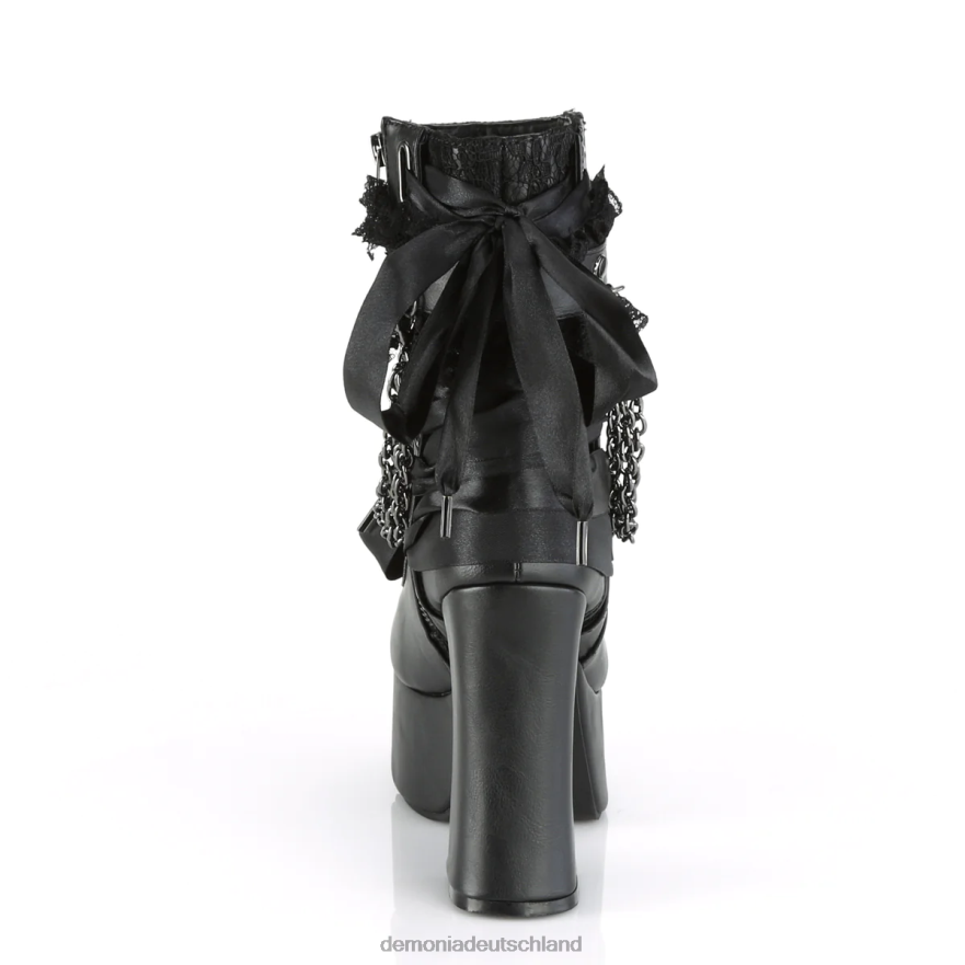 Steigen Sie ins Rampenlicht mit Charade-110, der ultimativen Stiefelette, die alle Anforderungen erfüllt. Diese Stiefel sind mit einem 4 1/2-Zoll-Blockabsatz und einem 2-Zoll-Plateau ausgestattet und bieten Stabilität und Höhe, ohne Kompromisse beim Komfort einzugehen. Die Schnürdetails aus Satinband vorne und hinten strahlen Eleganz aus, während der gerüschte Knöchelriemen mit hängendem Kettendetail für einen Hauch von Punk-inspiriertem Flair sorgt. Diese Stiefel bestehen aus einem schwarzen Überzug aus veganem Leder und sind sowohl trendig als auch ethisch verantwortungsbewusst. Mit einem Innenreißverschluss ist das Anziehen in Charade-110 ein Kinderspiel. Verbessern Sie Ihren Stil mit diesen atemberaubenden Stiefeln, die mühelos Raffinesse und Eleganz vereinen.